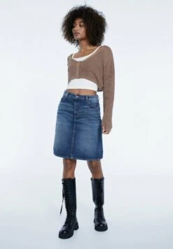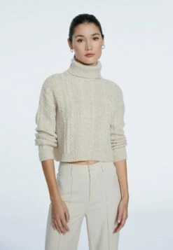 Stradivarius MIT HALBHOHEM ROLLKRAGEN UND ABGERUNDETEM SAUM 05004740 – Strickpullover – Beige