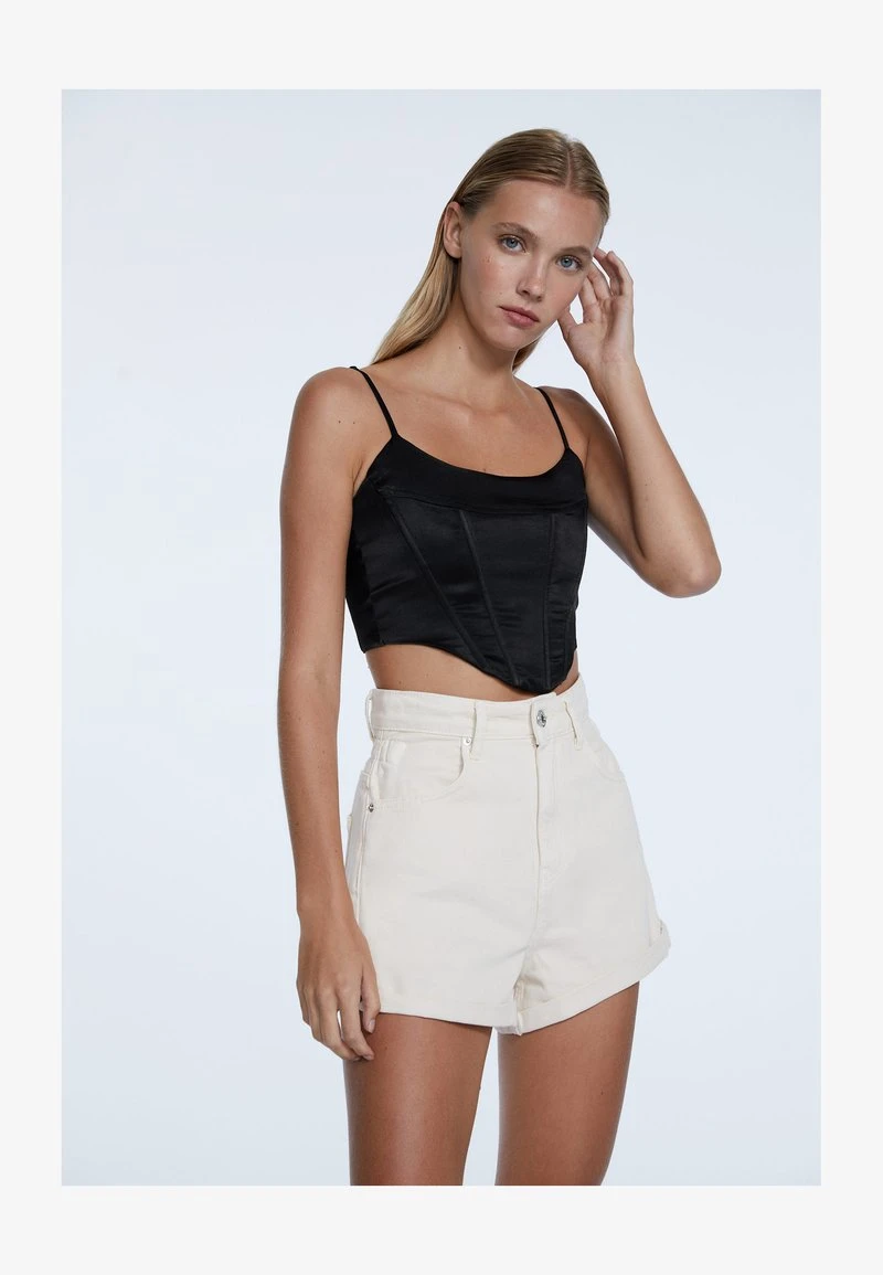 Stradivarius BALLOON – Jeans Shorts – Mottled Beige