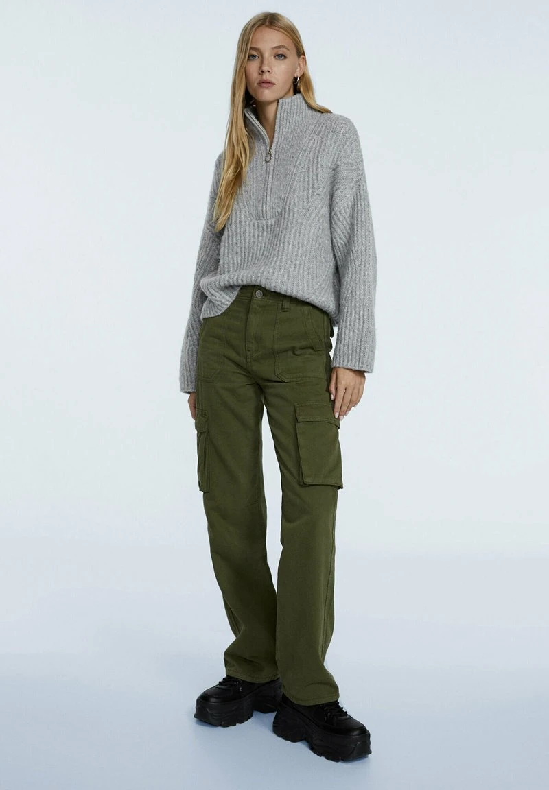 Stradivarius Grober Mit Reißverschluss – Strickpullover – Grey