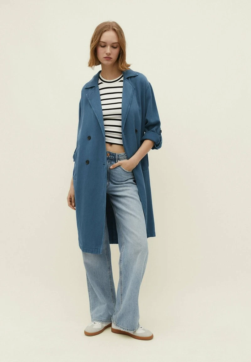 Stradivarius LONG – Trenchcoat – Mottled Light Blue