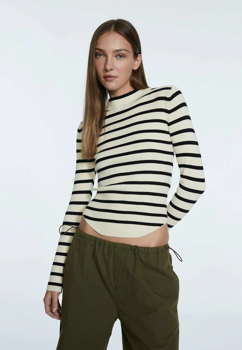 Stradivarius MIT HALBHOHEM ROLLKRAGEN UND ABGERUNDETEM SAUM 05004740 – Strickpullover – Beige
