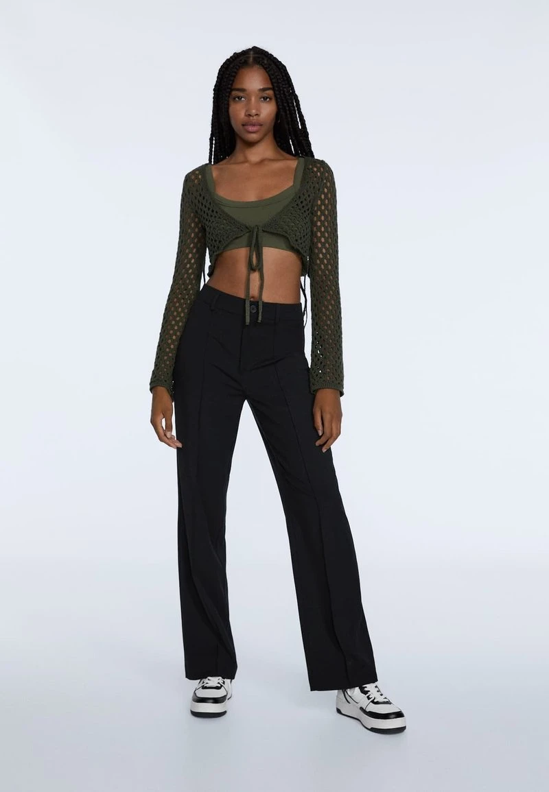 Stradivarius MIT MITTELNAHT – Stoffhose – Black