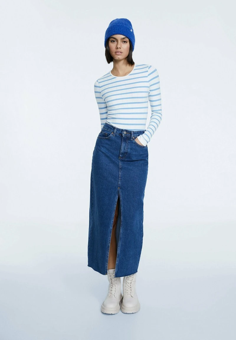 Stradivarius MIT RUNDHALSKRAGEN – Langarmshirt – Black