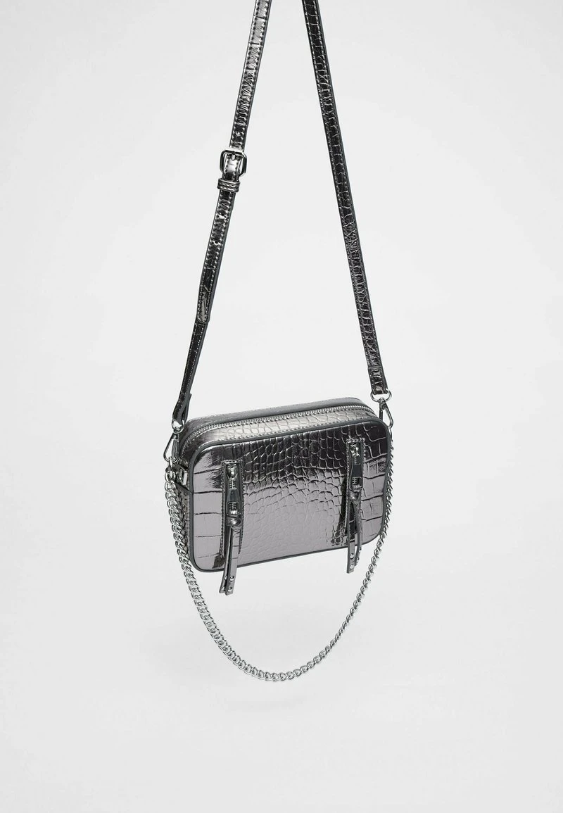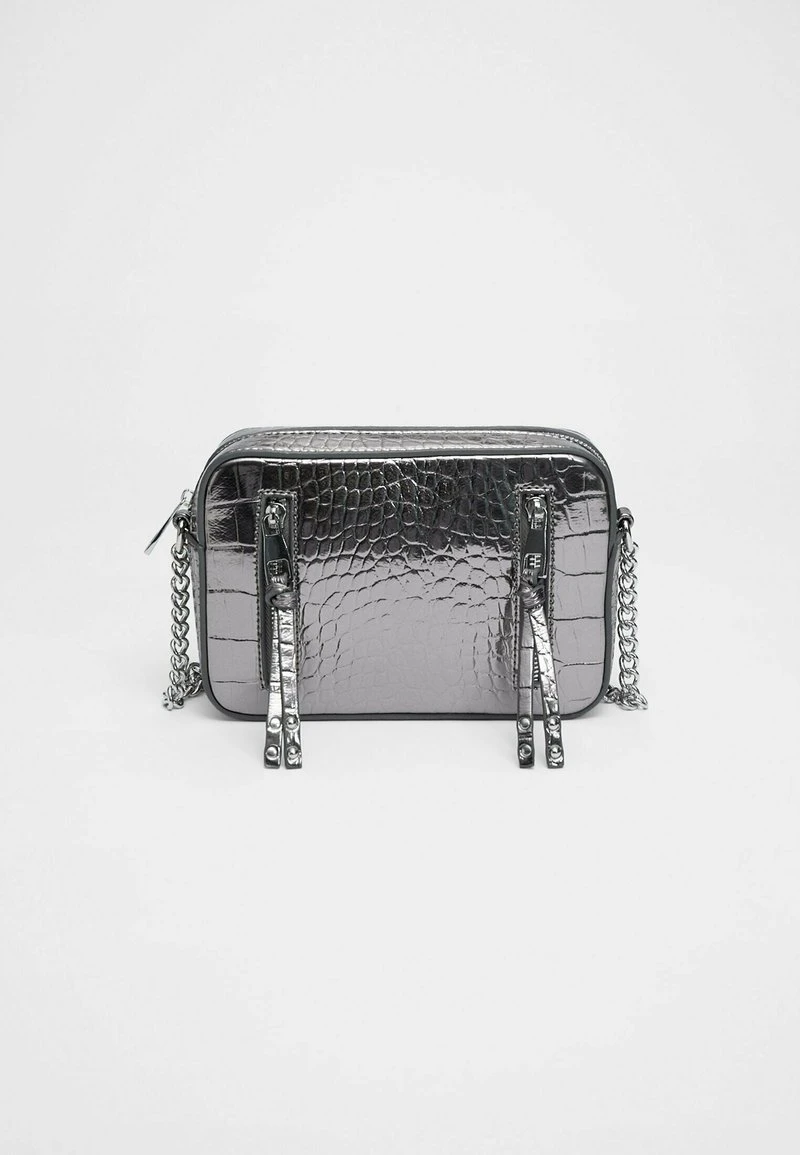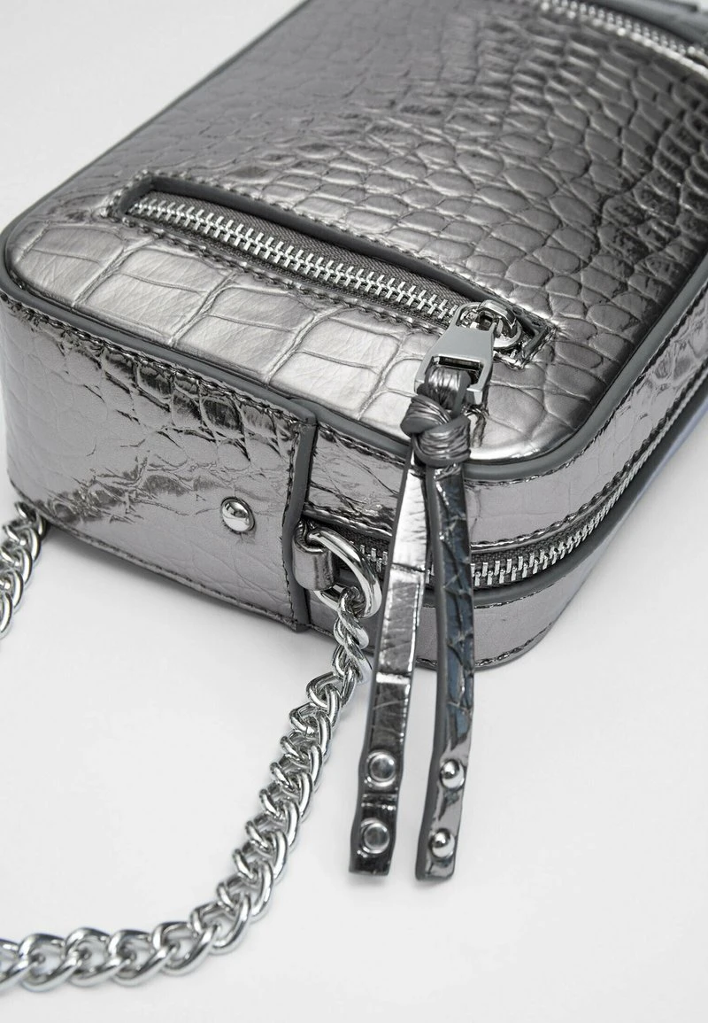 Stradivarius MOCK CROC AND ZIP-UP REPORTER – Umhängetasche – Grey