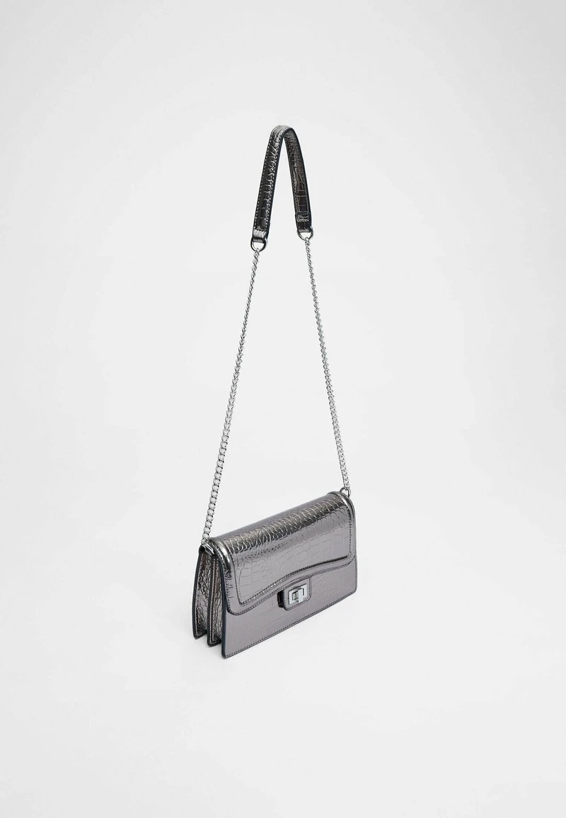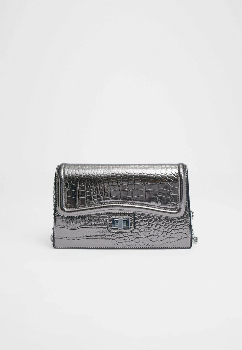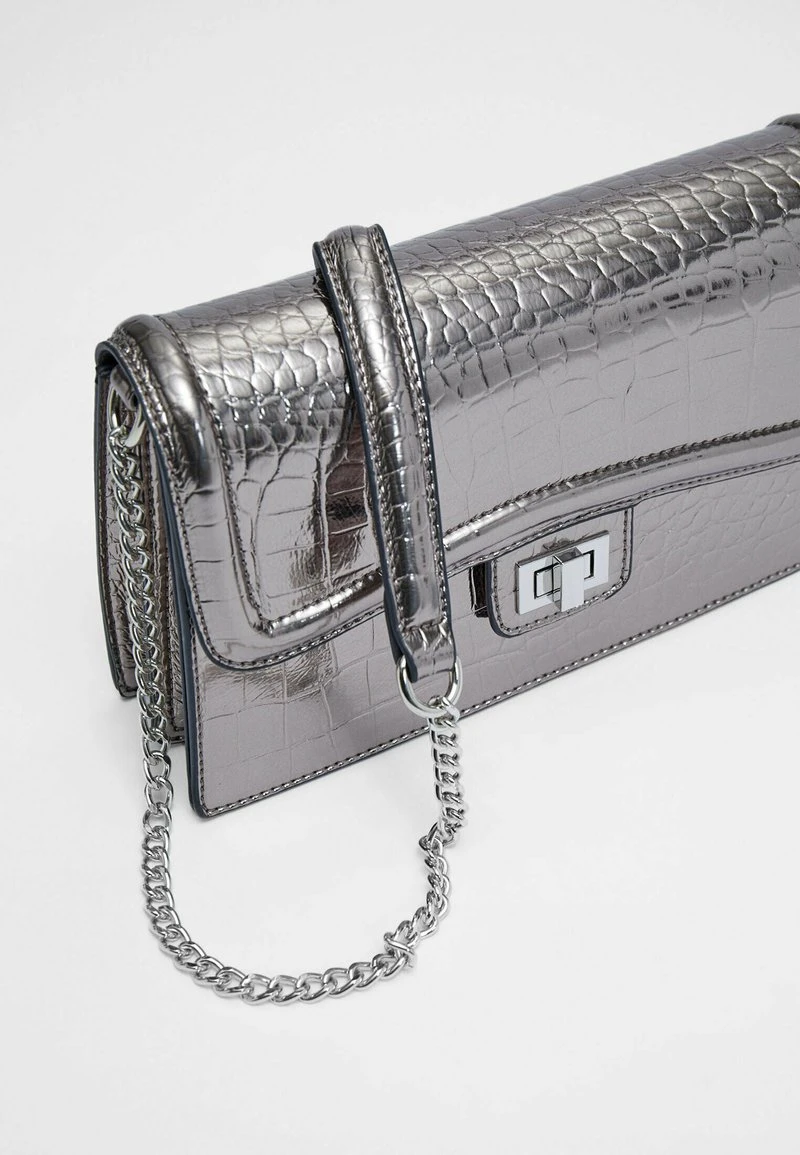 Stradivarius MOCK CROC WITH CHAIN – Umhängetasche – Grey