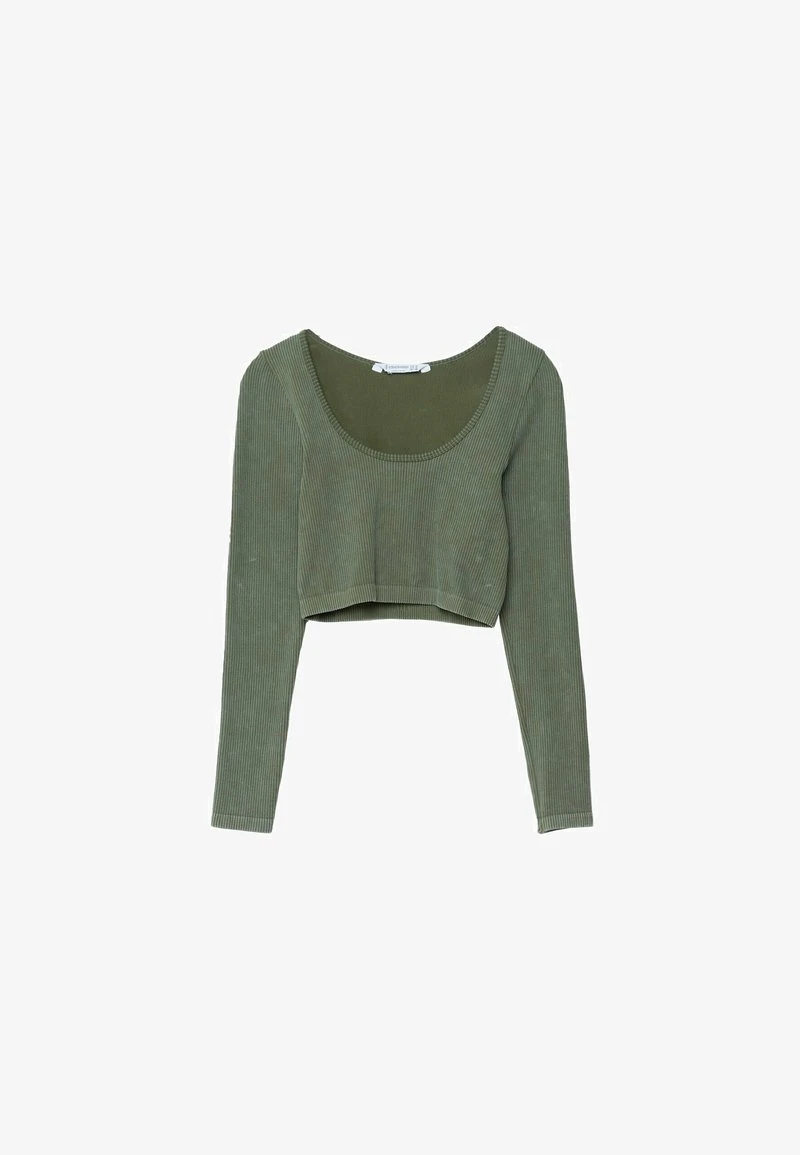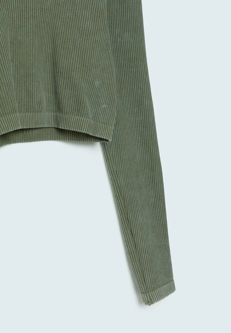 Stradivarius NAHTLOSES CROPPED – Langarmshirt – Khaki