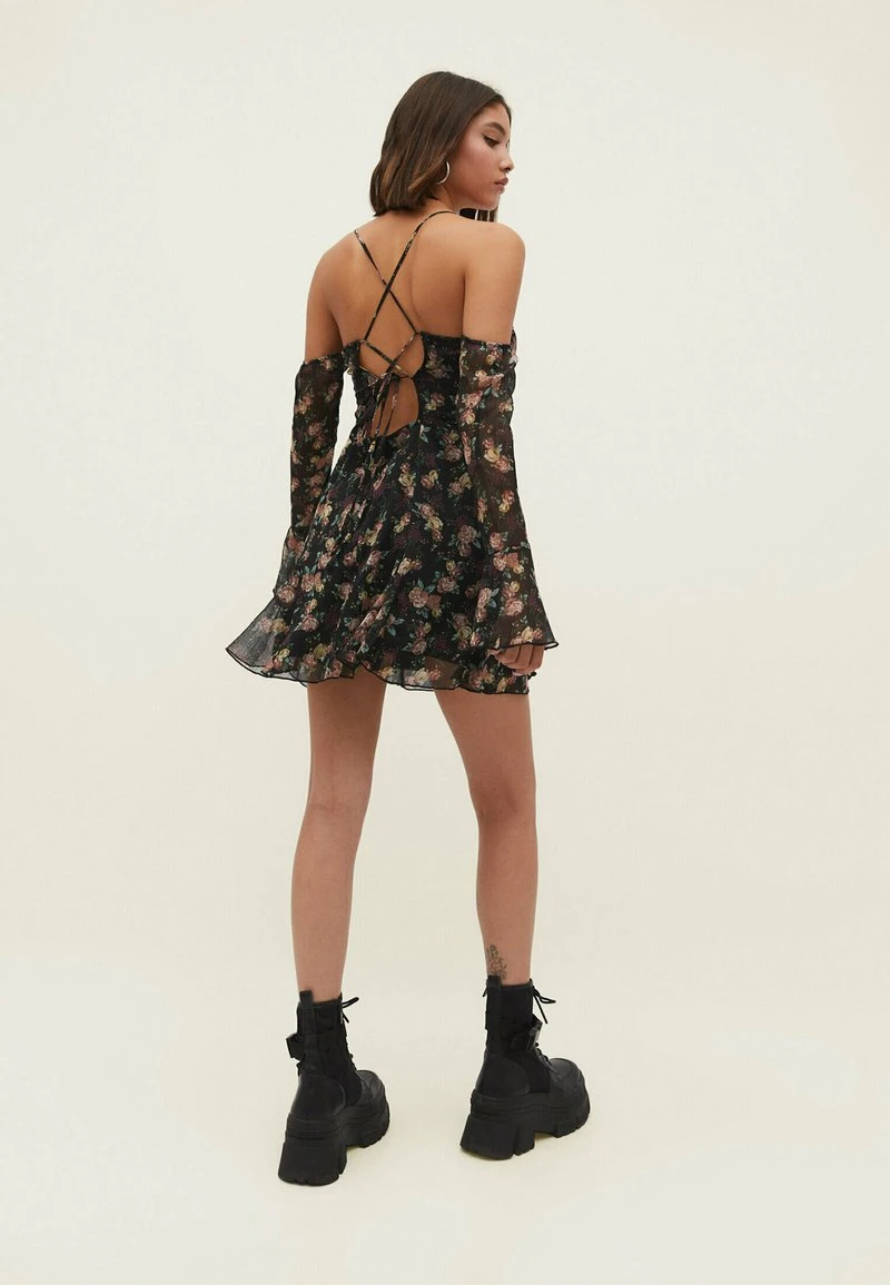 Stradivarius SHORT RUFFLED WITH A CRISS-CROSS BACK – Freizeitkleid – Mottled Lilac