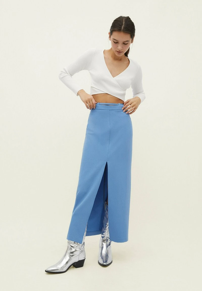 Stradivarius SMART WITH WAISTBAND DETAIL – A-Linien-Rock – Mottled Light Blue